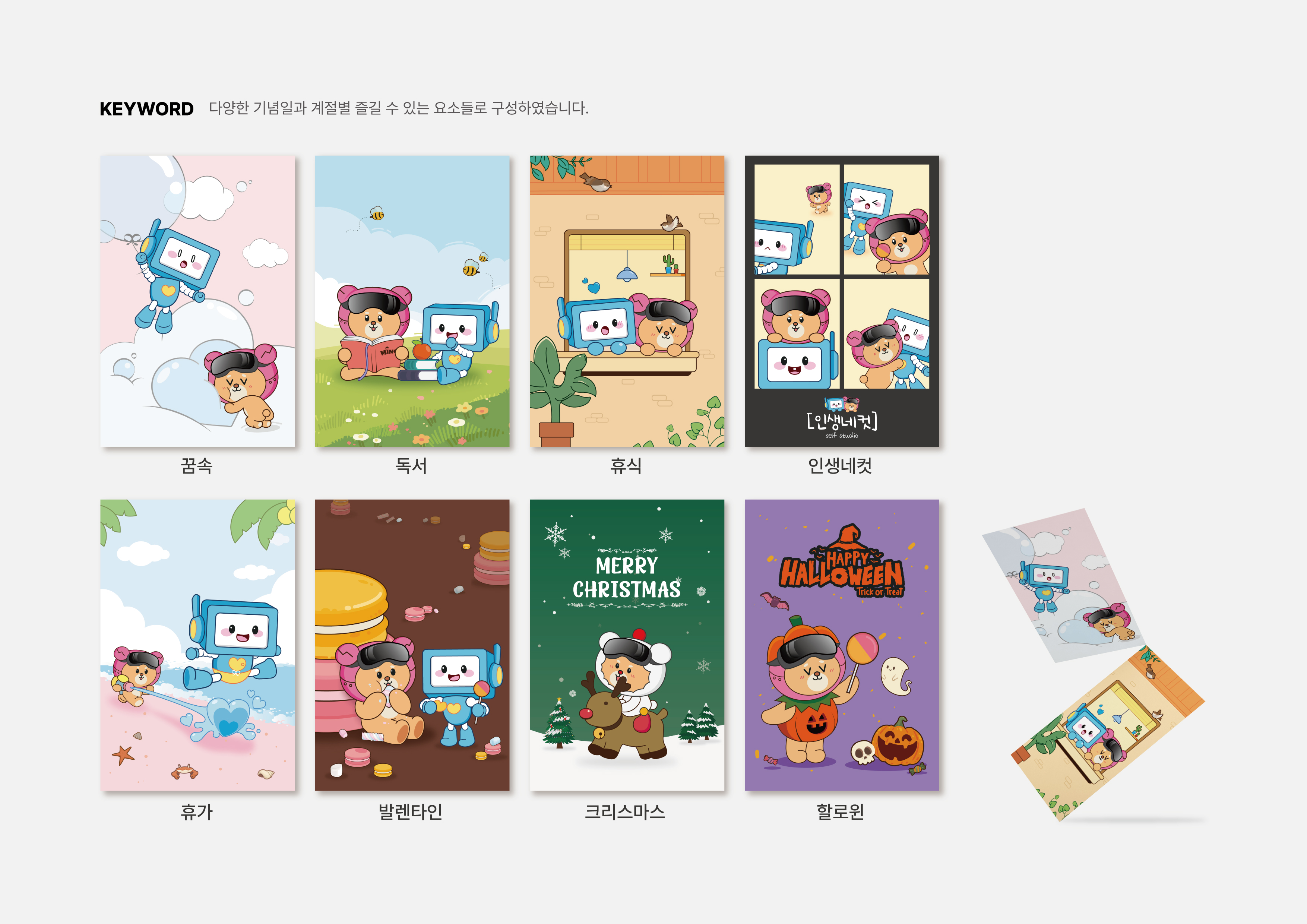 - 현 상황 자료 조사 → 진행할 컨텐츠 분야 조사→ 브랜딩 → 일러스트 및 시각 자료 → UI/UX → 패키지 → 실물 굿즈 제작 → 팝업 부스 제작 → 최종 결과물