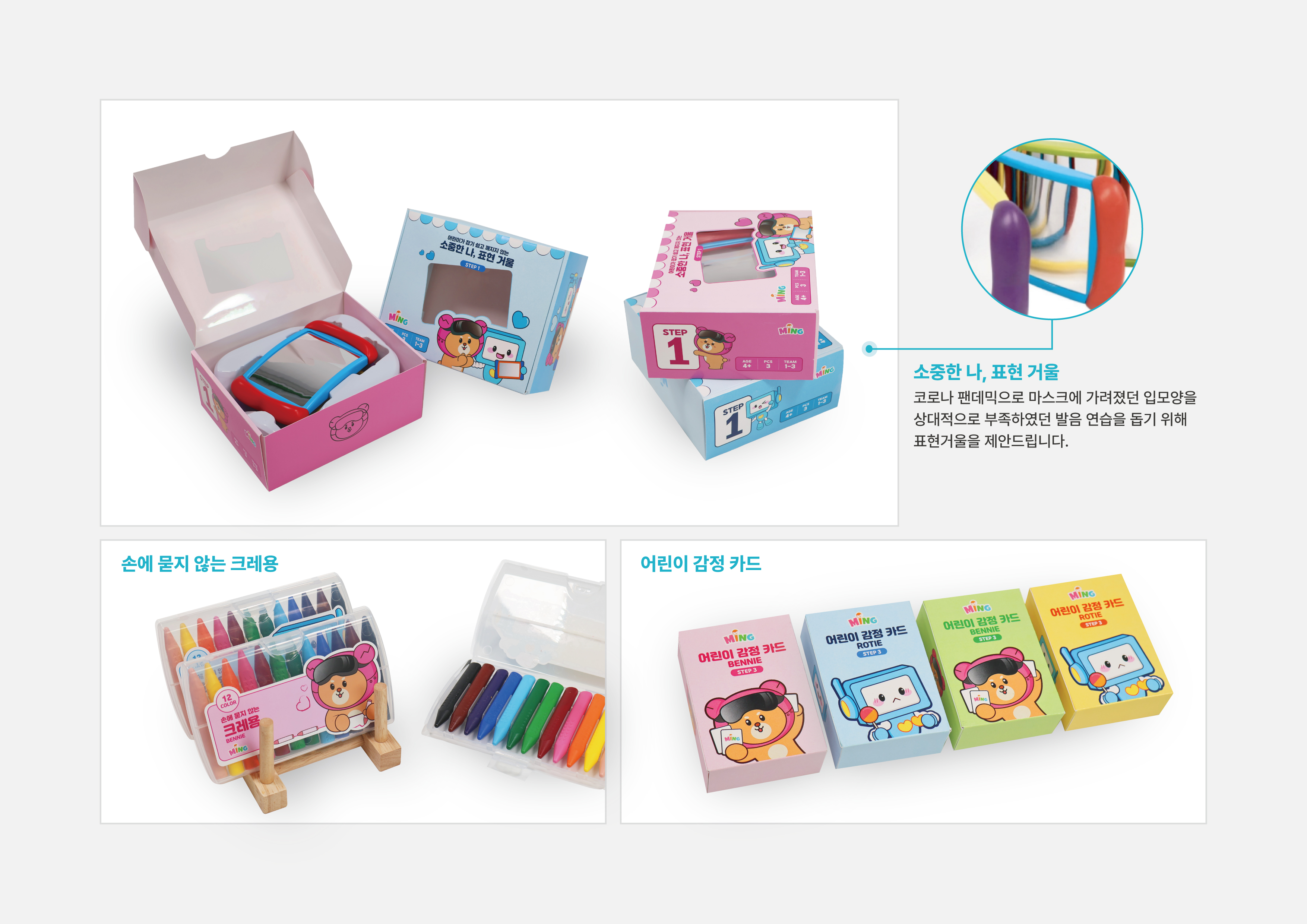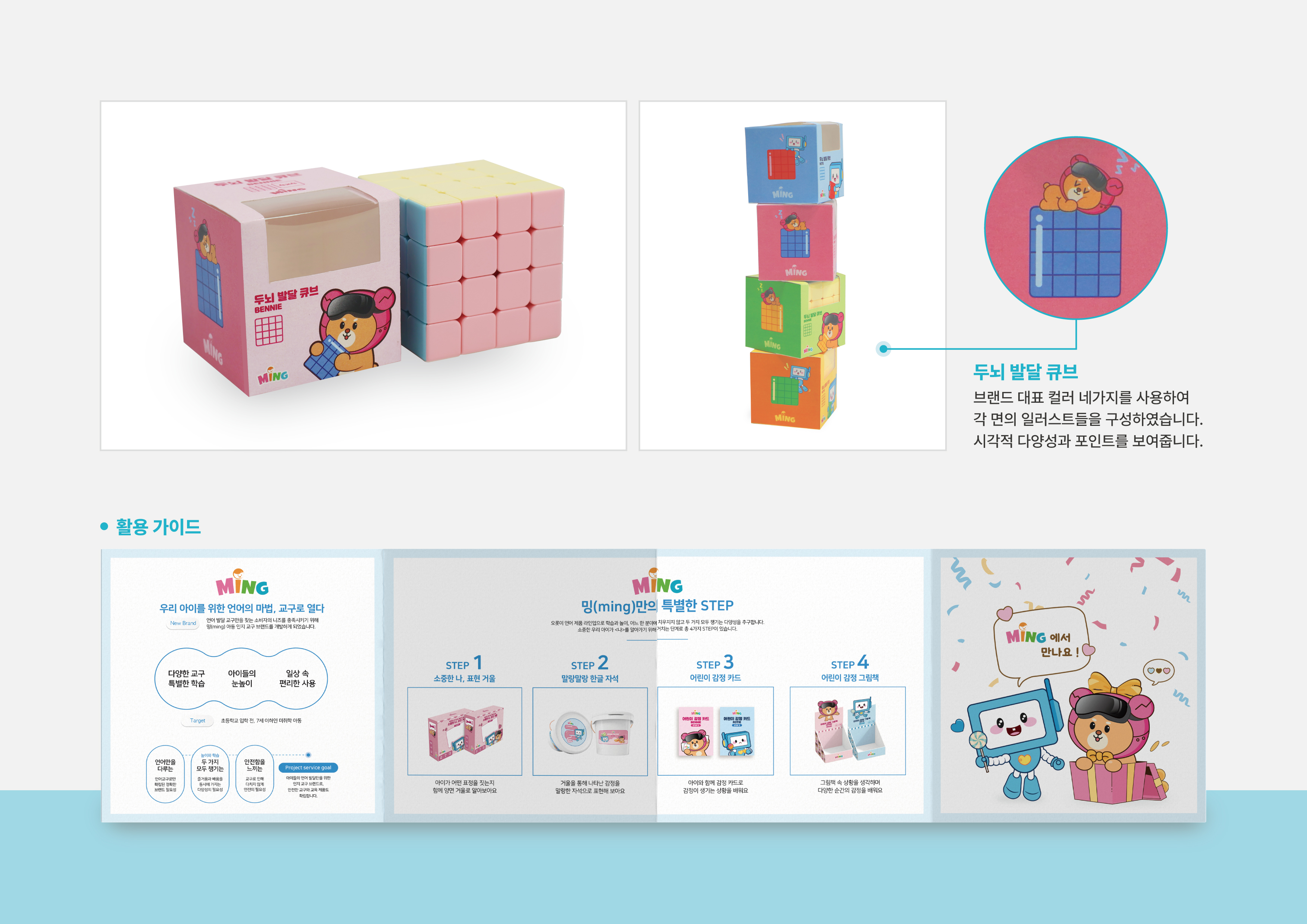 - 통합 브랜드 프로젝트에 맞춰 그래픽 뿐만 아닌, 각기 다른 교구들의 특성에 맞는 실물 패키지 제작할 것